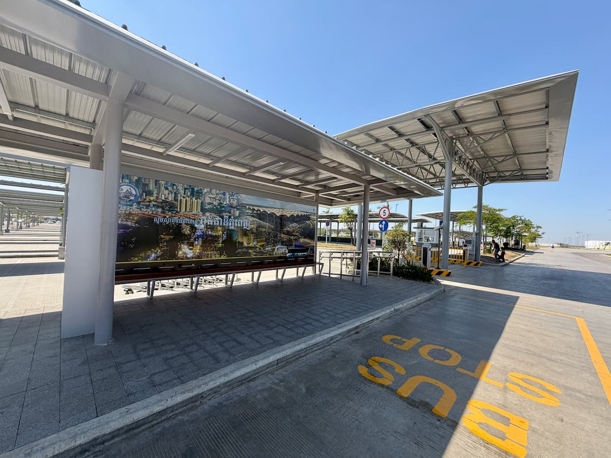 (左側にもまったく同じようなバス停がありますが、こちらは空港に到着するバスが停留所です。)