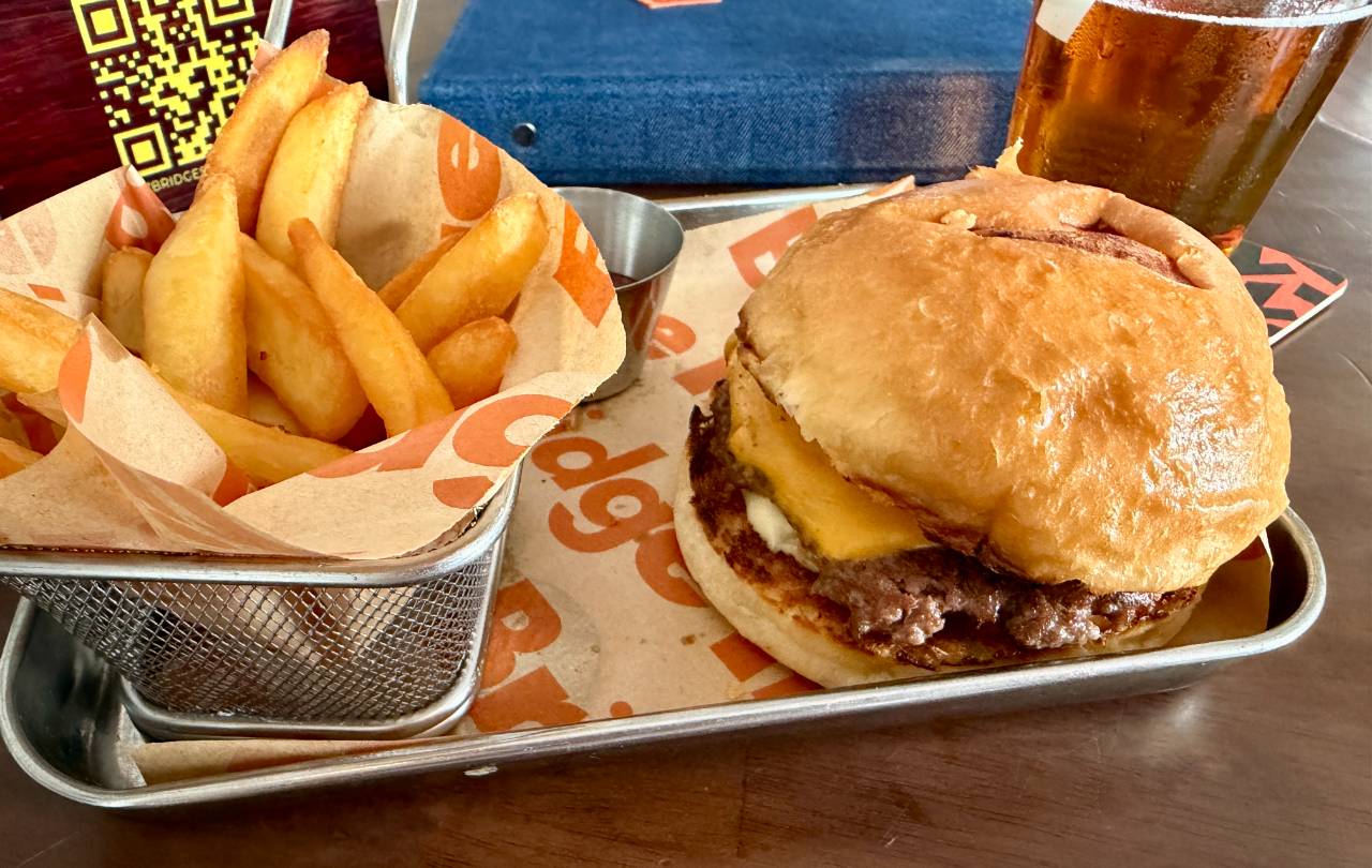 APAには、バーガーでしょう、ということでバーガーもオーダー。やや甘めのバンズは個人的には大好きなベクトルではないですが、ピクルス多めでパティーも美味しく、普通に満足できました。ここはなんでもしっかりしてますわ。