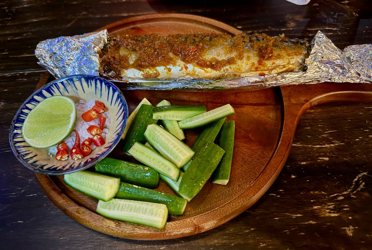 肉系が欲しかったのですが、どれもがっつり量がありそうだったので、とりあえず魚を注文。以外にこれも普通に一匹丸々でなかなか多かった。ザ冷凍モノという魚でしたが、身はふっくらしていて、きゅうり多めでライムと塩たっぷりで普通に美味しかったです。