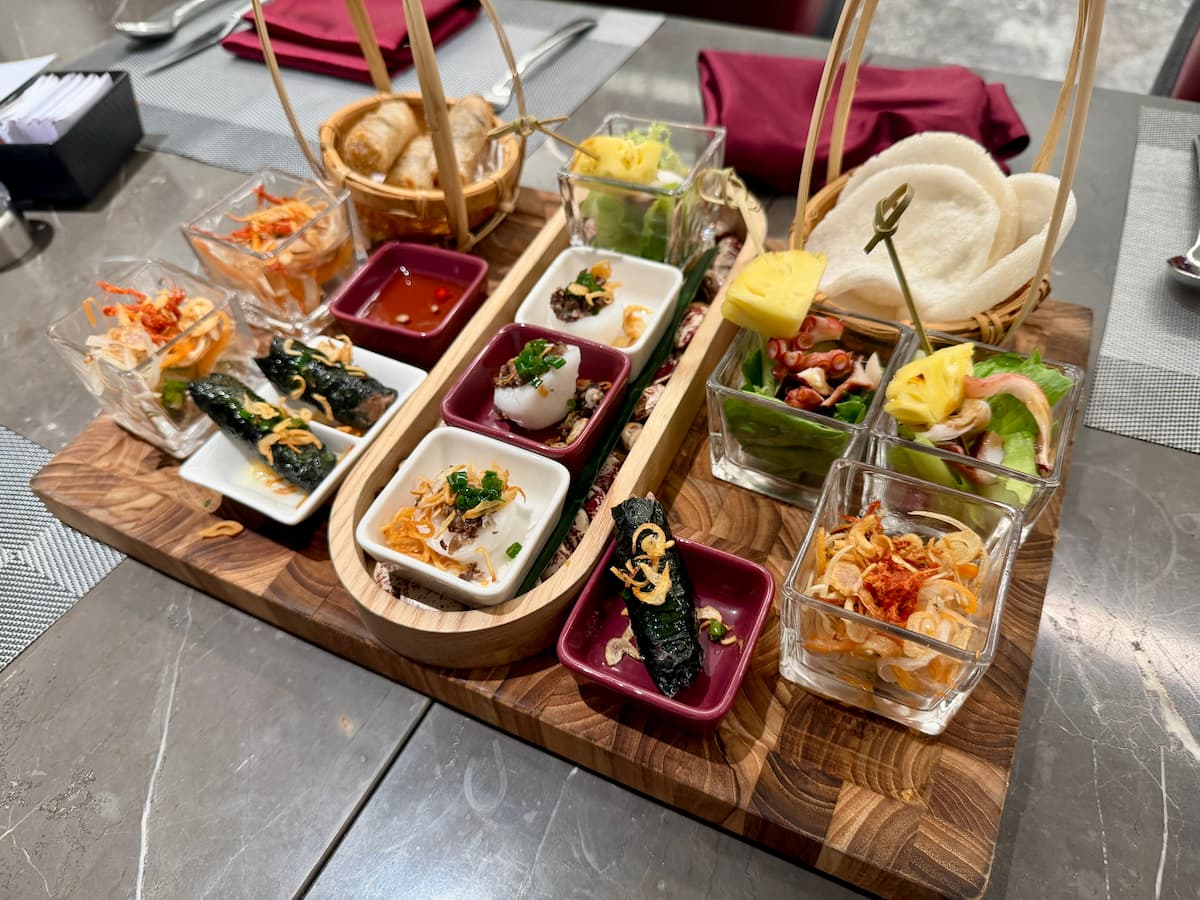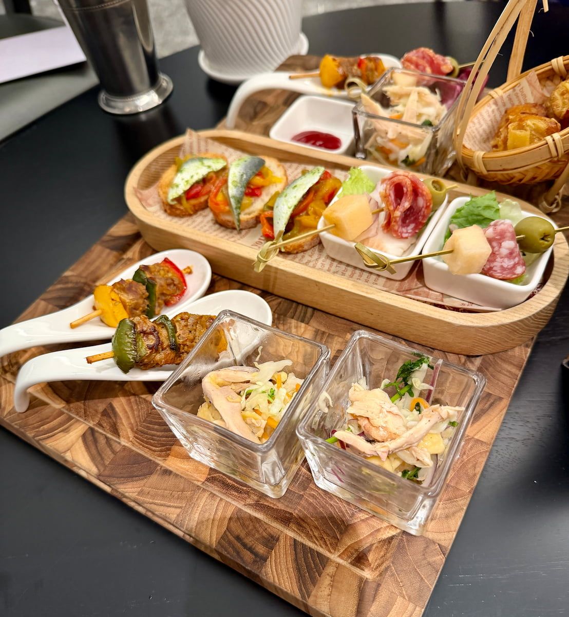着席すると自動的にこちら↓が出てきました。生春巻きやサンドイッチは悪くなかった。(甘いものはあまり食べていないのでノーコメント。)