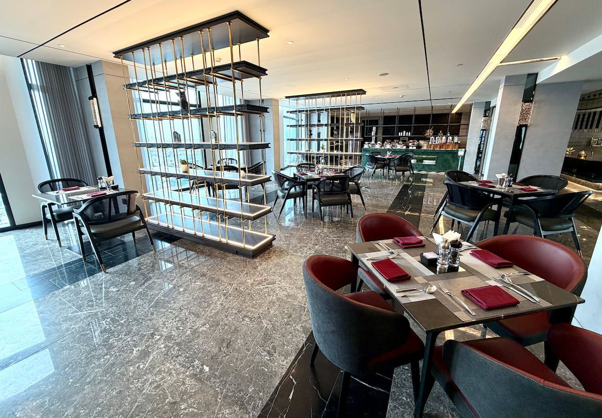 両サイドがガラス張りで景色も良いし明るいし、テーブルの配置もゆったりで非常にGood。