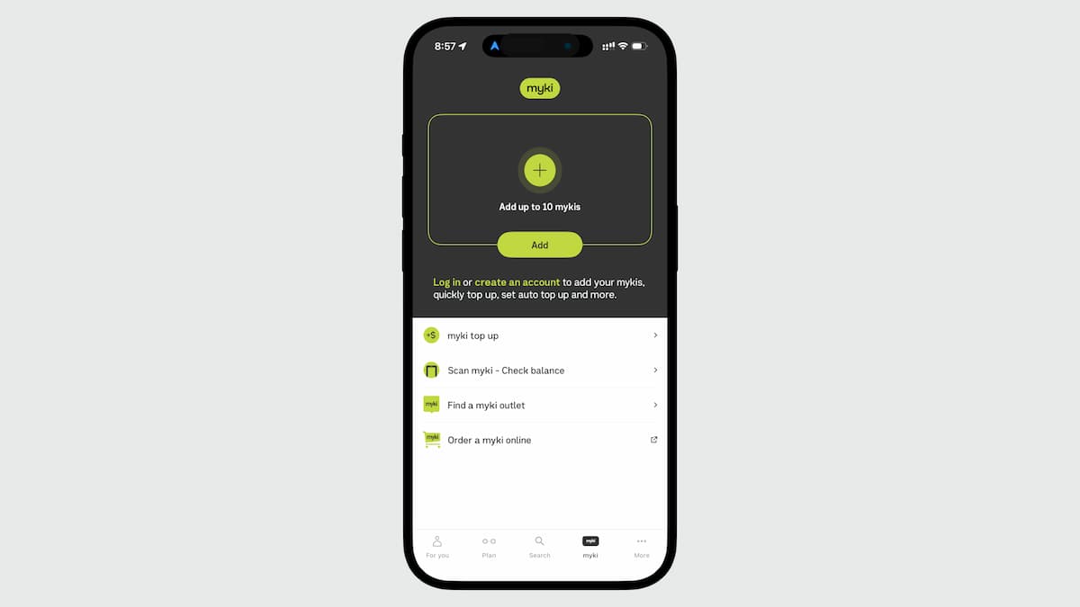画面下のメニューのひとつに「myki」があるのでそちらをタップ。